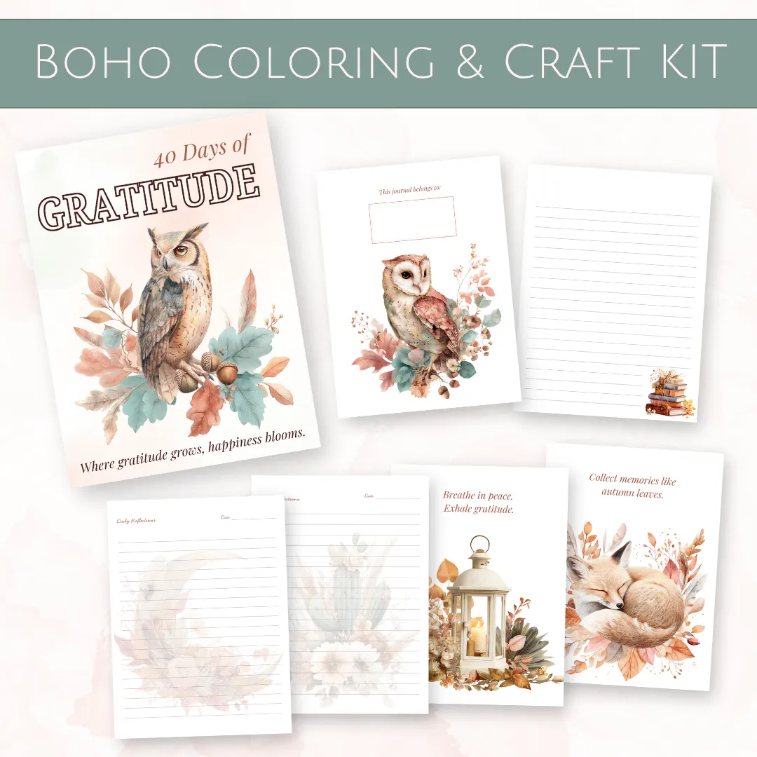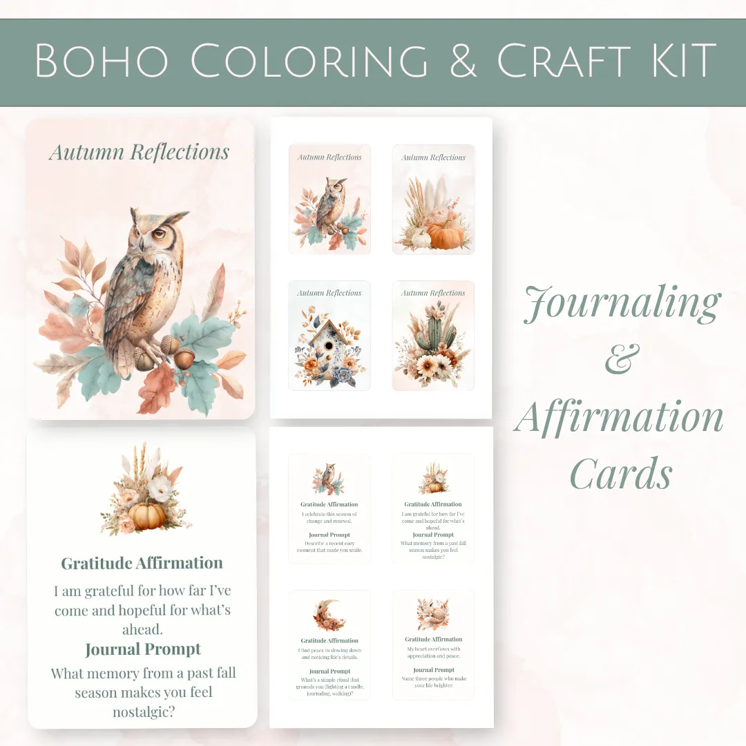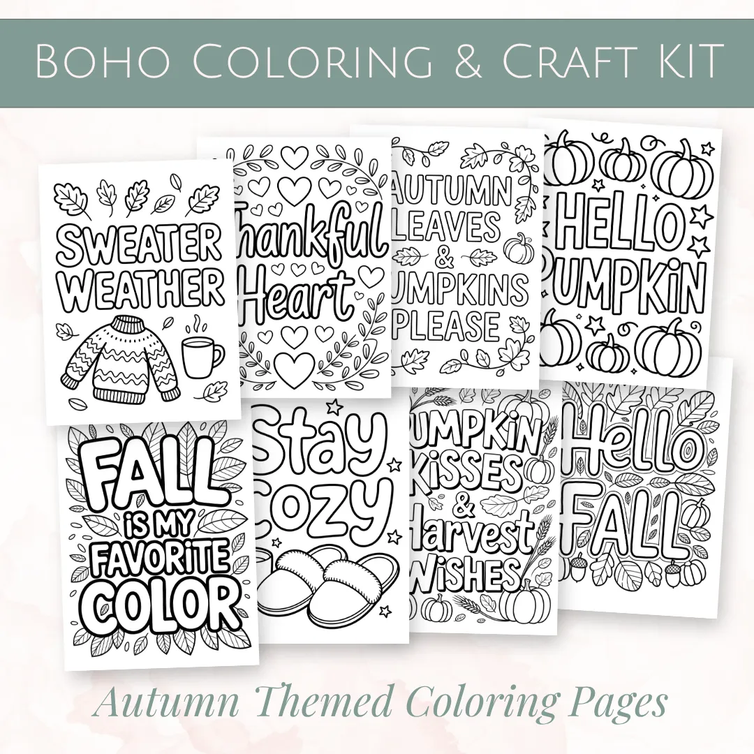The Boho Autumn Coloring & Craft Kit is more than just printables — it’s your invitation to pause, play, and pour a little more gratitude into your days.